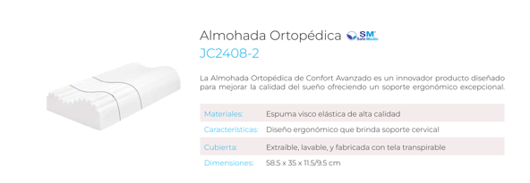 Esta almohada ortopédica está contorneada para seguir la curvatura natural de tu cuerpo, promoviendo una alineación correcta de la columna cervical. Es ideal para reducir el dolor de cuello, hombros y espalda, mejorando significativamente la calidad de tu sueño.