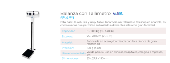 Instrumento de medición dual que permite determinar tanto el peso corporal como la estatura. Es una herramienta esencial en consultorios médicos y clínicas para un seguimiento completo de los parámetros de salud.