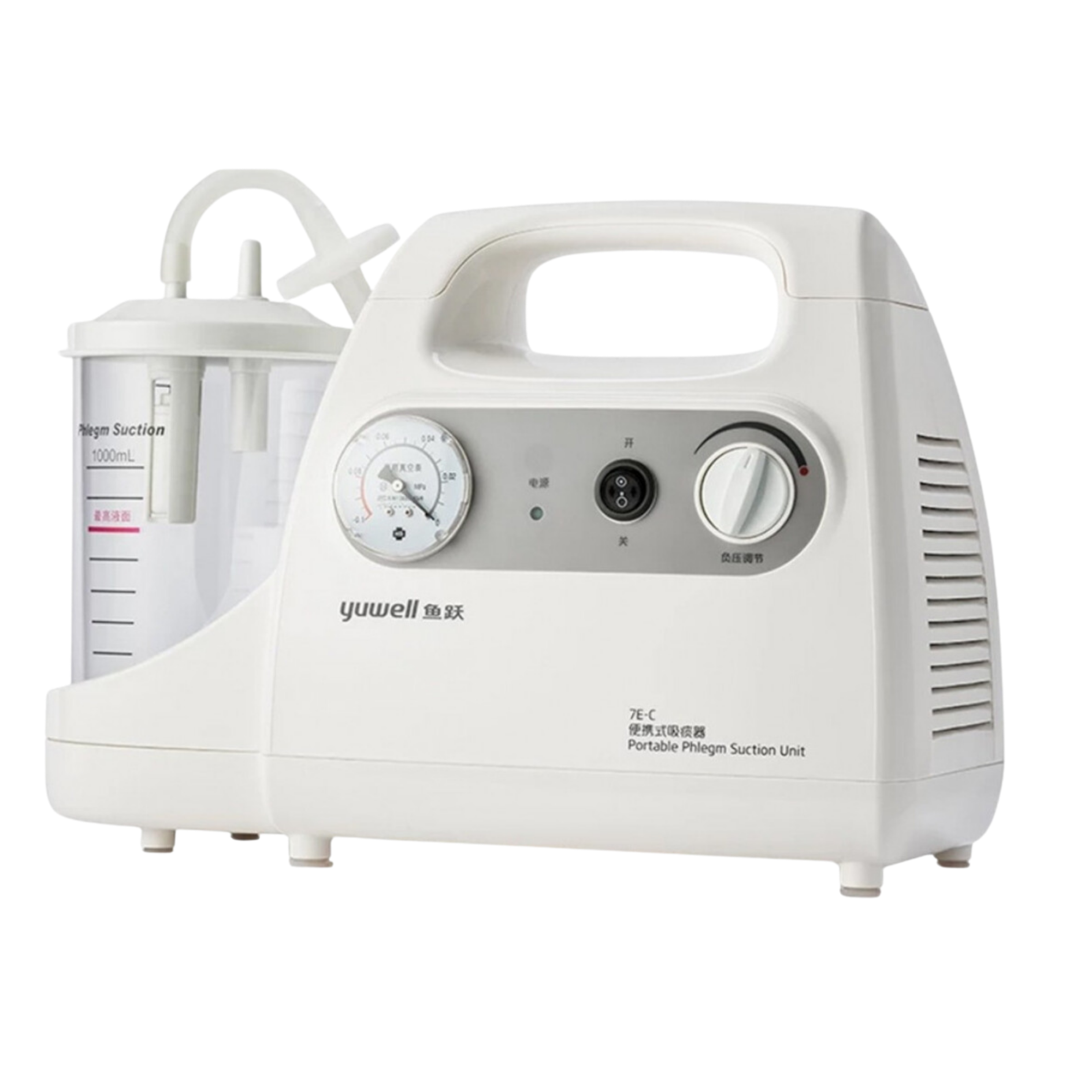 Un aspirador de secreciones eficiente y de bajo ruido, diseñado para uso clínico o en el hogar. Su potente motor garantiza una succión constante y fiable para el manejo de las vías respiratorias.