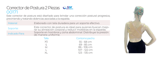 Sistema de dos bandas que se cruzan en la espalda para tirar suavemente de los hombros hacia atrás. Es un recordatorio postural para evitar encorvarse.