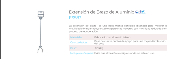 También conocida como alcanzador, esta herramienta ligera de aluminio permite a los usuarios agarrar objetos a distancia sin necesidad de agacharse o estirarse. Ideal para personas con movilidad reducida.