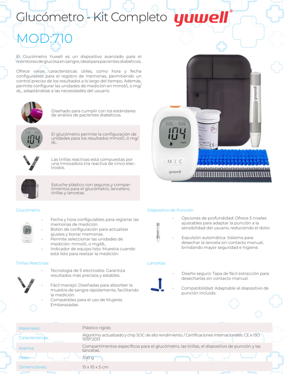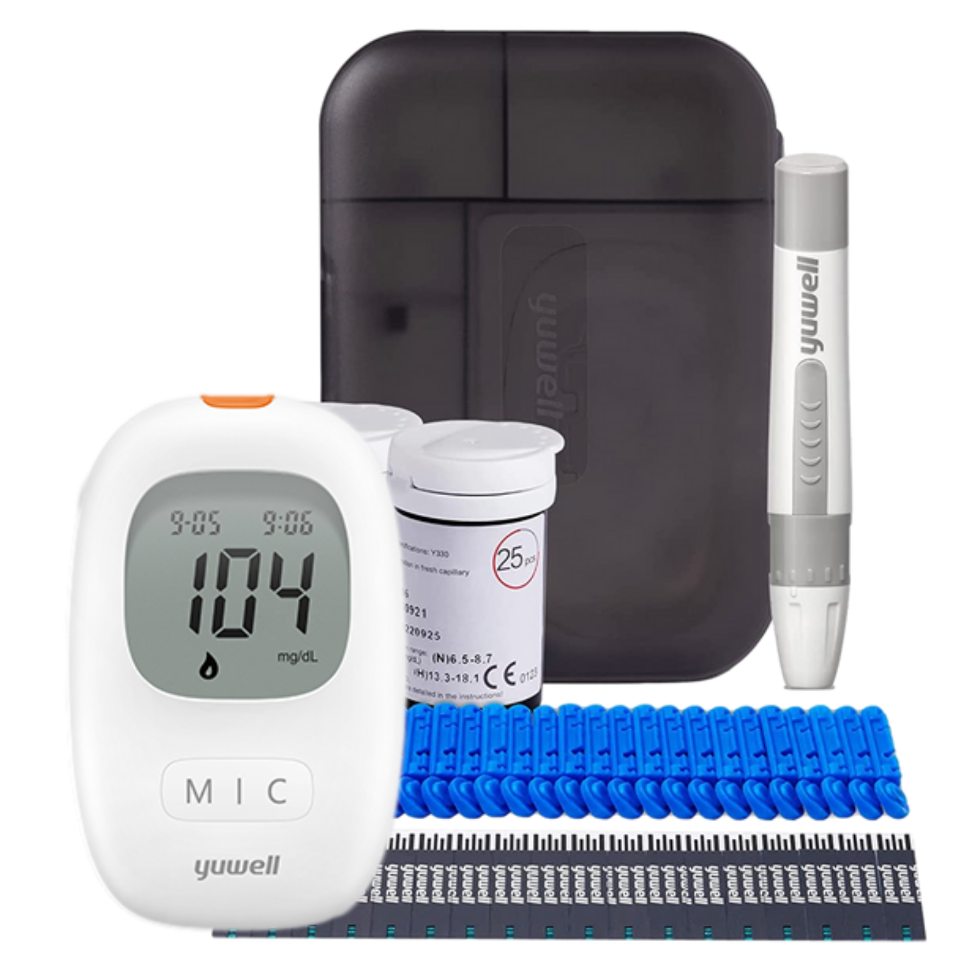 Un kit completo para la medición de los niveles de glucosa en sangre. Incluye el medidor, lancetas, tiras reactivas y un estuche. Permite a los pacientes diabéticos un monitoreo fácil y preciso.