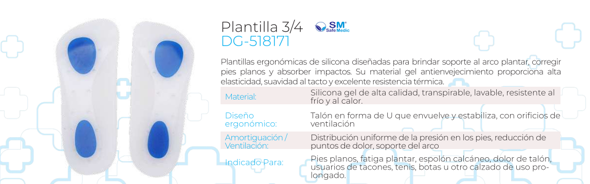 Plantilla más corta que llega desde el talón hasta justo antes de los metatarsianos. Ideal para calzado más estrecho o de vestir, proporcionando soporte en el arco y el talón sin ocupar espacio en la puntera.