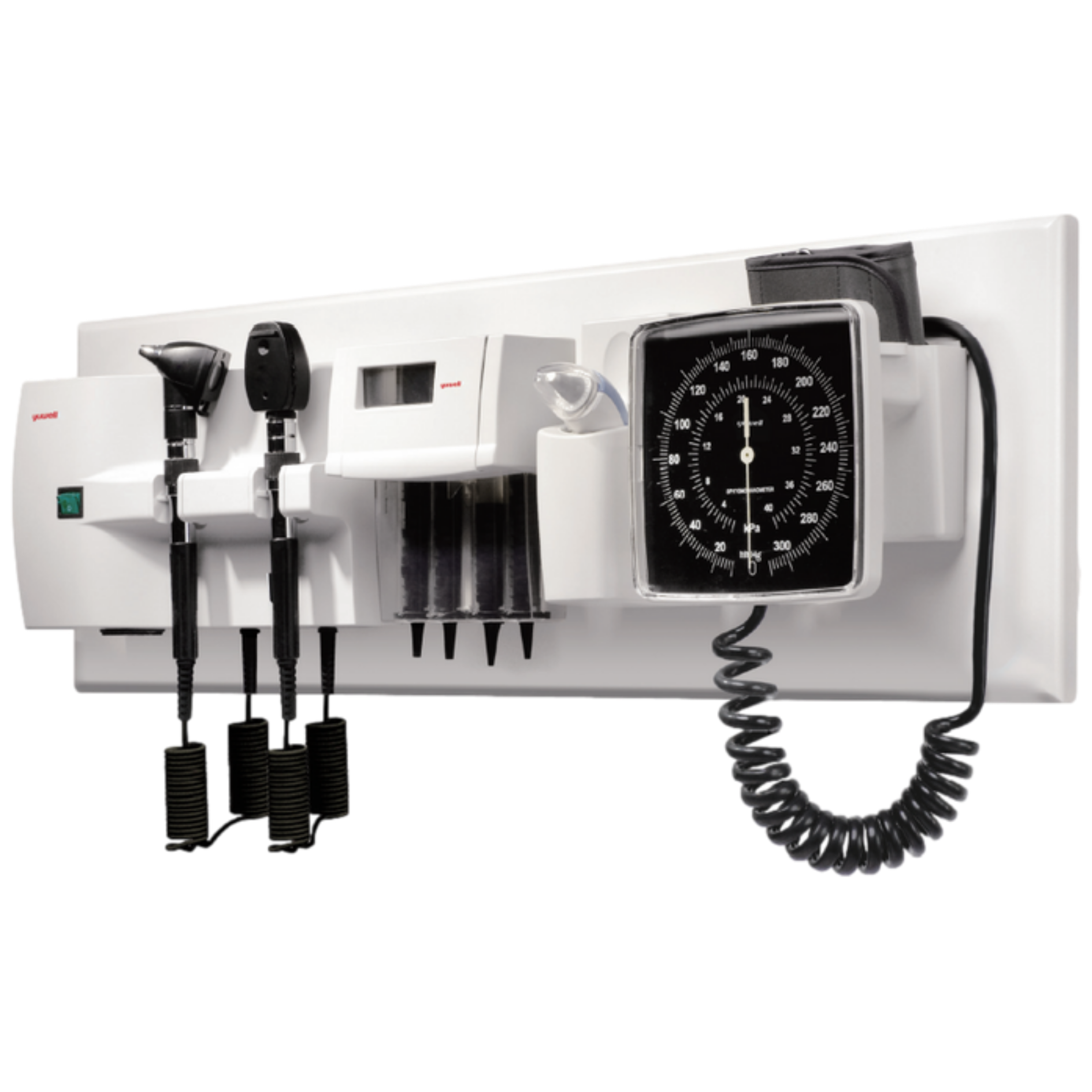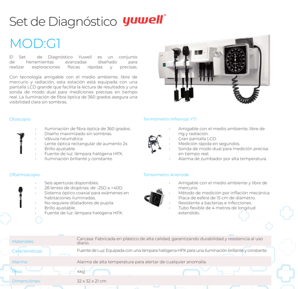 Kit esencial para profesionales de la salud que incluye un oftalmoscopio y un otoscopio. Permite un examen detallado de los ojos, oídos, nariz y garganta.