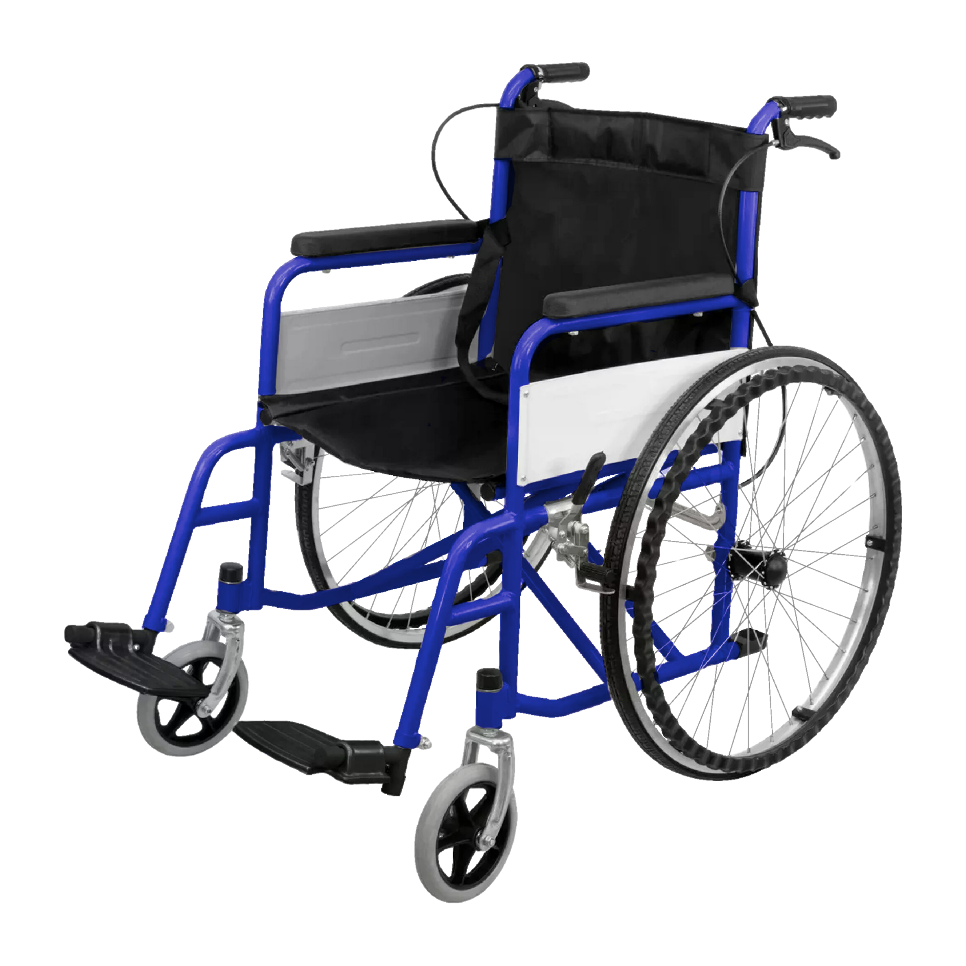 Silla de ruedas robusta y funcional con ruedas traseras neumáticas (de aire), que ofrecen una mejor amortiguación y un desplazamiento más suave en terrenos irregulares.