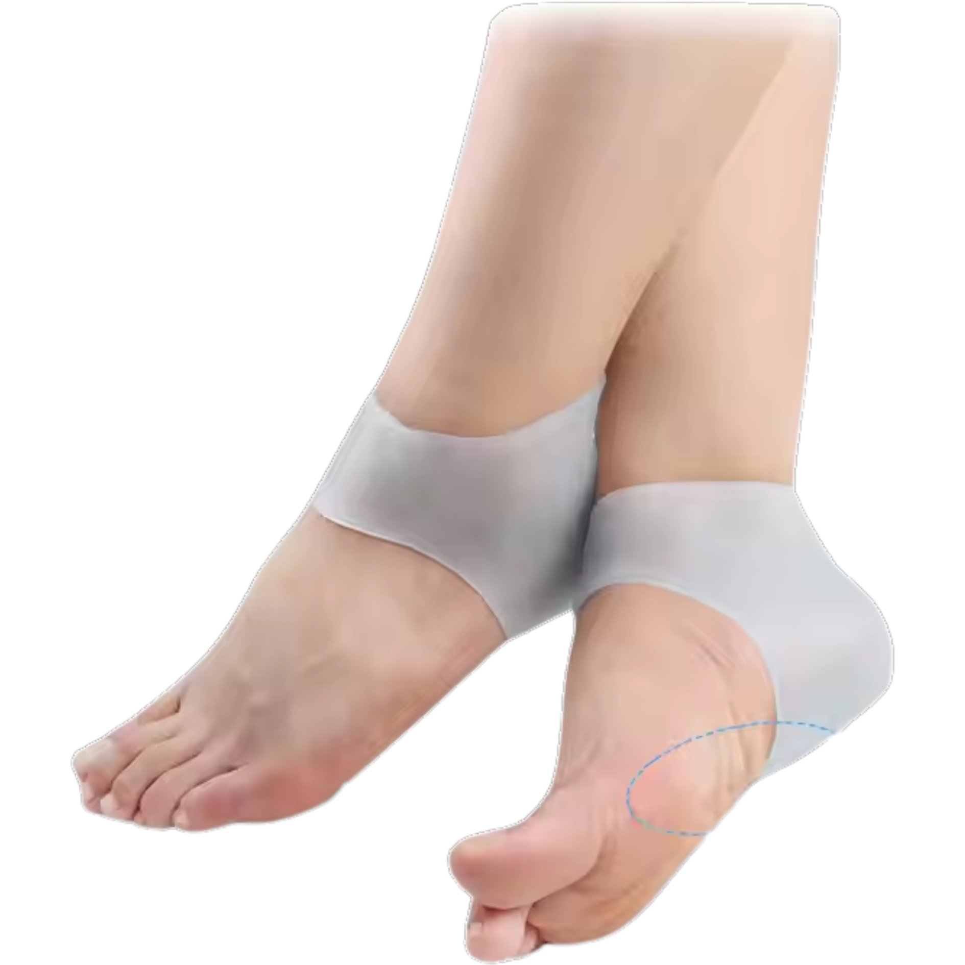 Un soporte 2 en 1 que combina una talonera de gel o silicona para amortiguar el talón con una tobillera elástica que proporciona compresión y soporte a la articulación.