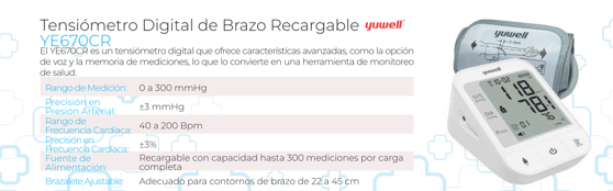 Tensiómetro Digital de Brazo Recargable YE670CR
